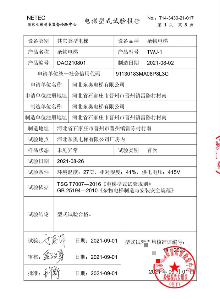 特種設(shè)備型式試驗(yàn)報(bào)告